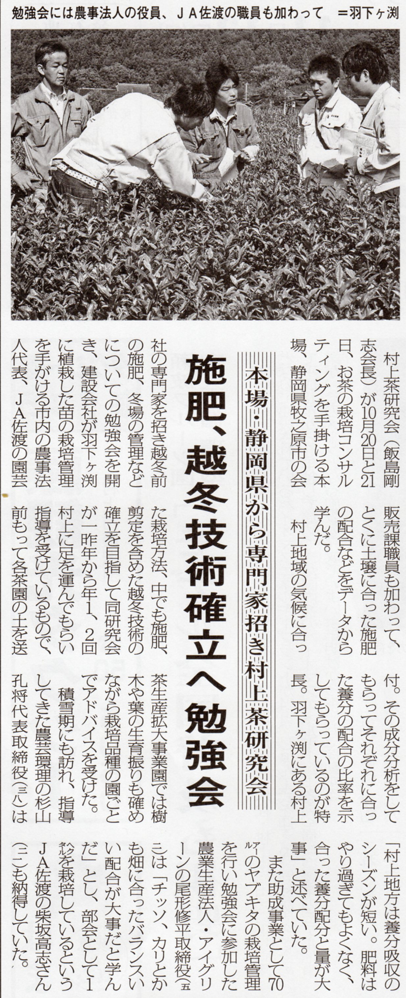 しかし、この思いを伝えると社長は快く引き受けてくださいました。そして、コンサルティングがスタートしたのです。社長には、大変遠いこの村上ですがご好意で定期的に足を運んでいただいています。(現在、社長は当園加盟、村上茶研究会の外部顧問)